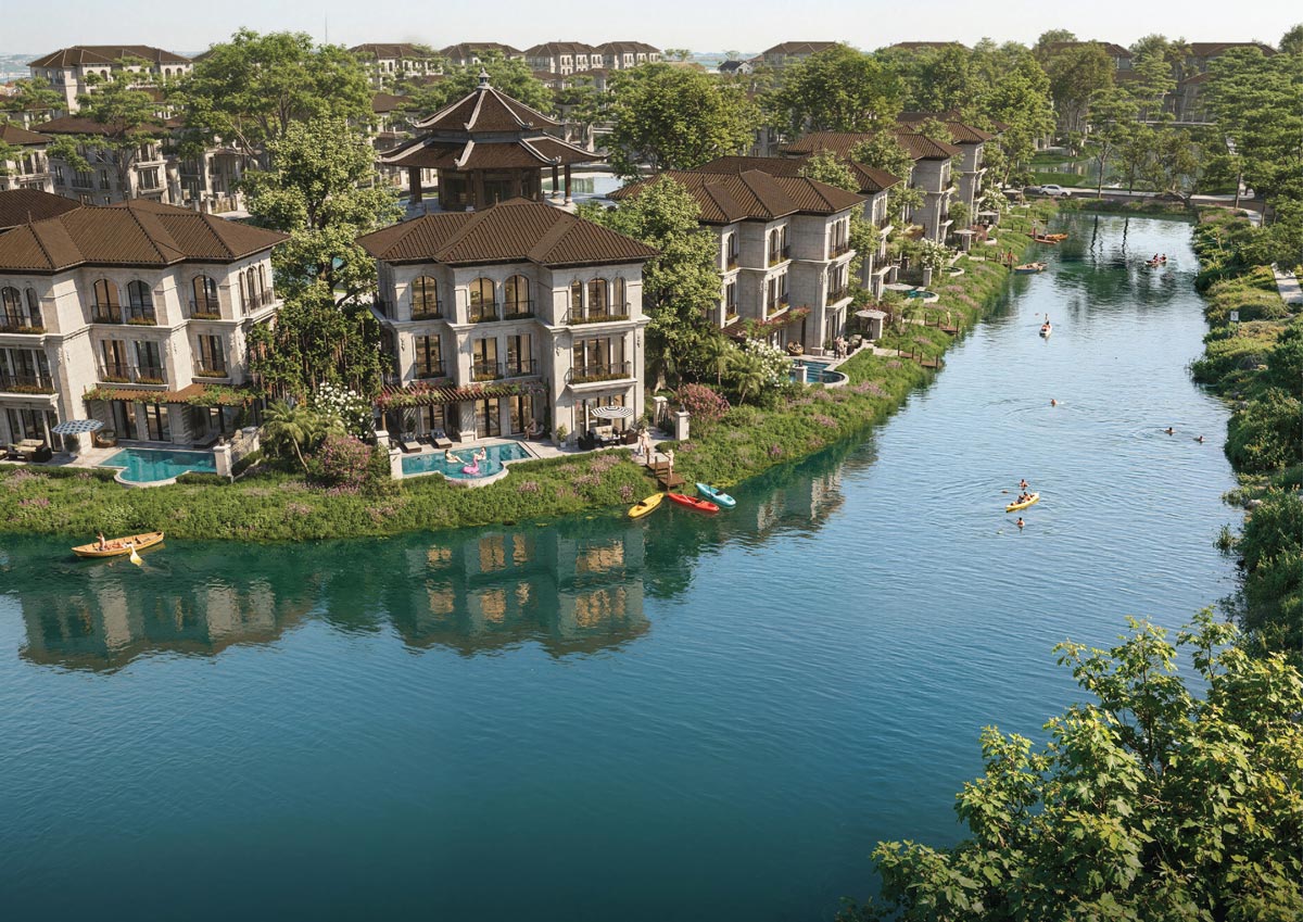 Biệt thự song lập có diện tích từ 180–250m², thiết kế 3–4 tầng, 2–3 mặt thoáng, công năng bố trí hợp lý. Phong cách kiến trúc tinh tế, không gian xanh bao quanh, phù hợp gia đình đa thế hệ. Đây là lựa chọn cân bằng giữa sự riêng tư và kết nối cộng đồng, vừa sang trọng vừa gần gũi.